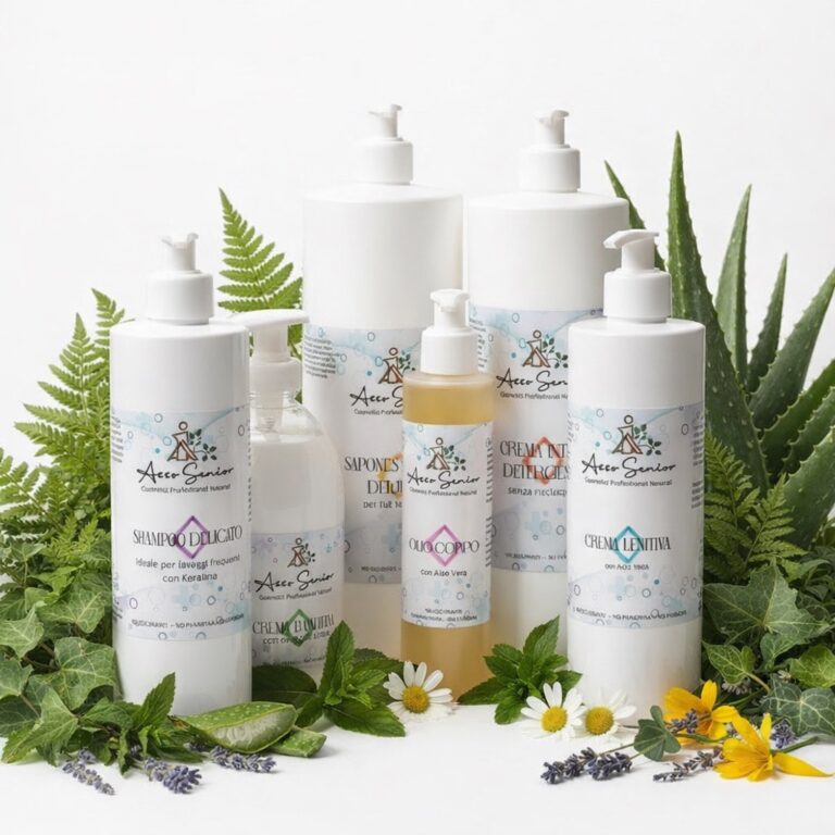 L’igiene è un’esigenza importante per tutte le persone, e ancora di più lo è per gli anziani e i disabili. I nostri Cosmetici Professionali Naturali ASSO SENIOR sono nati con lo scopo di svolgere un ruolo essenziale nell’igiene delle pelli mature, fragili e sensibili, tipiche della terza età. Sono facili da utilizzare e hanno formulati naturali, di altissima qualità, totalmente privi di coloranti, paraffina e parabeni.